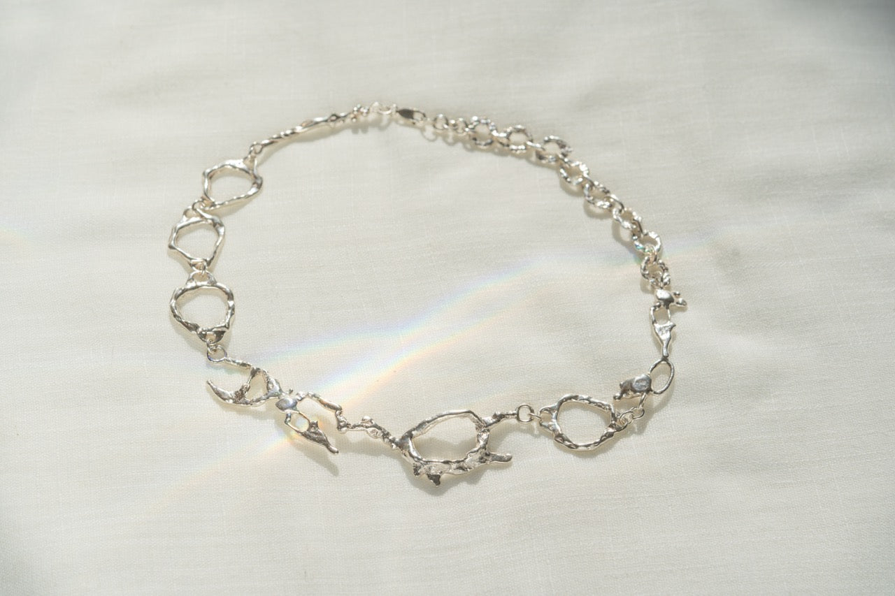 the CHAOS necklace is formed from flowing, molten sterling silver, carrying a grounded, elemental weight.