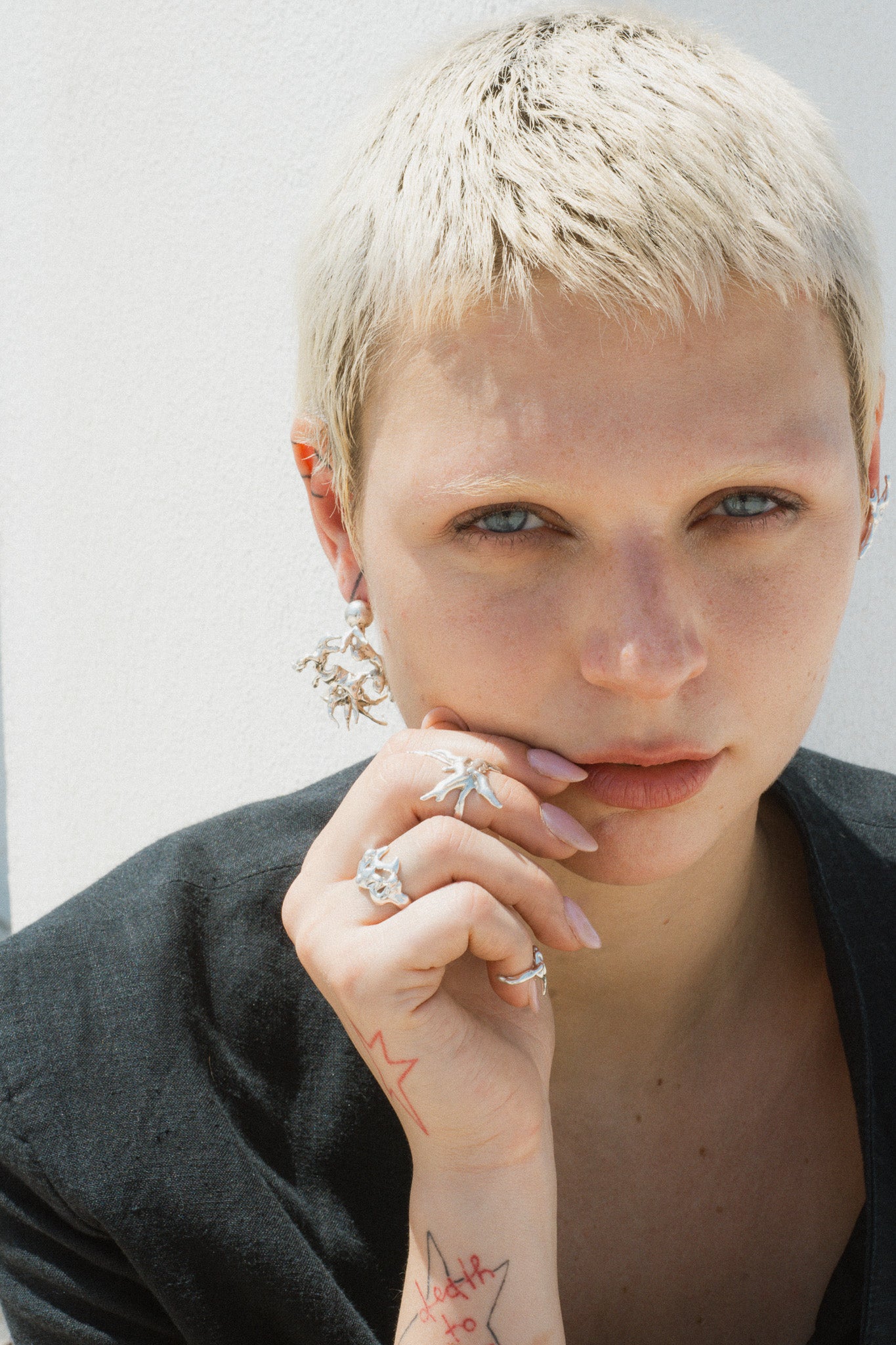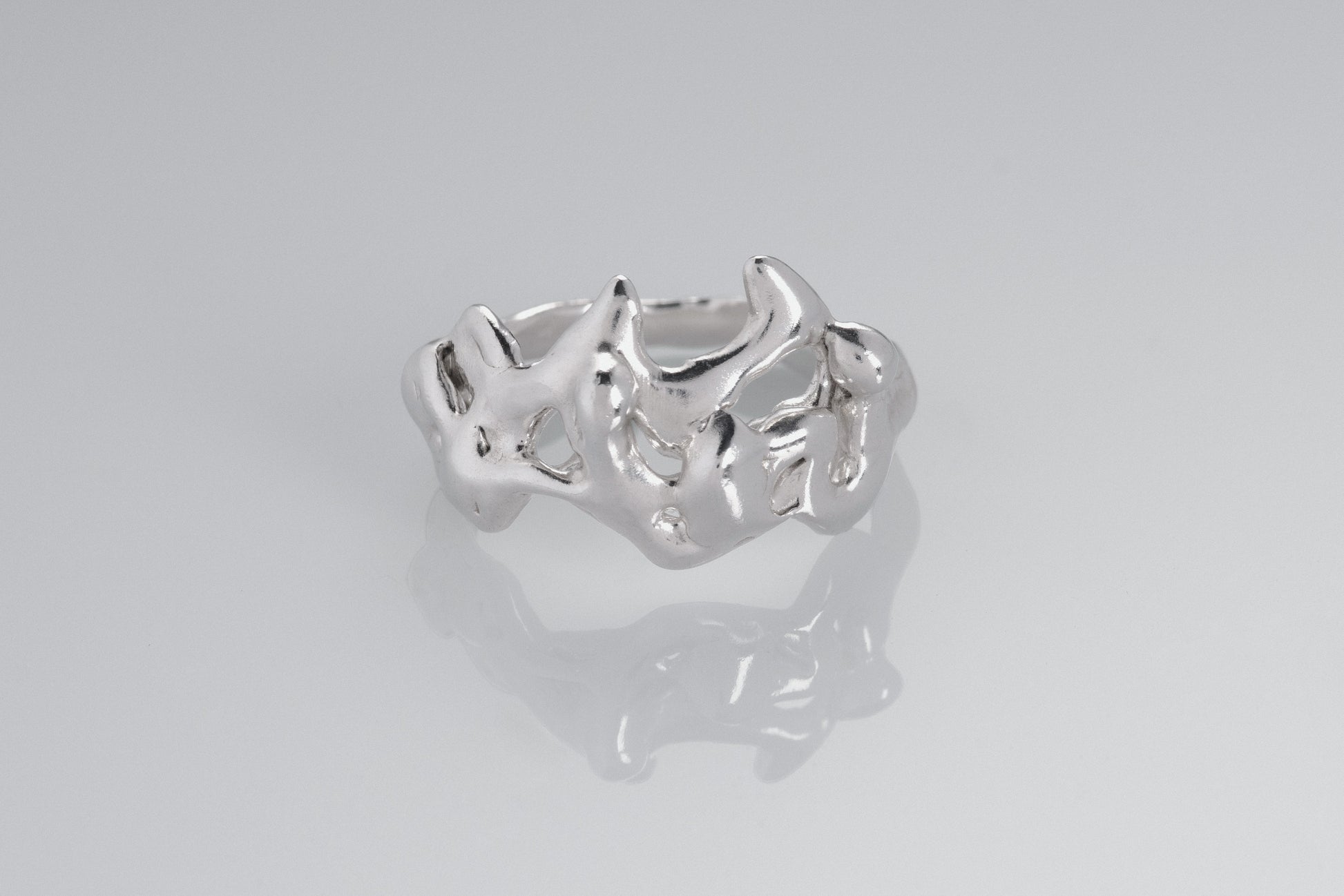 the ESH ring is shaped in a freeform molten silhouette, medium in weight and cast entirely in sterling silver.