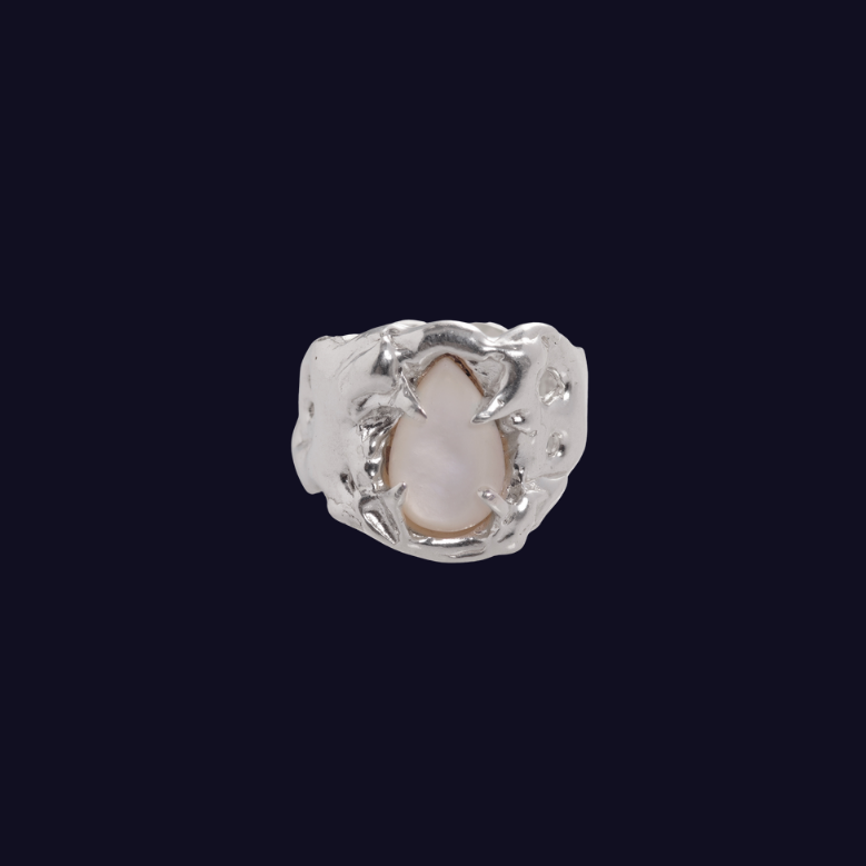 The Tipa ring is a limited edition design with a mother of pearl setting in a drop shape.