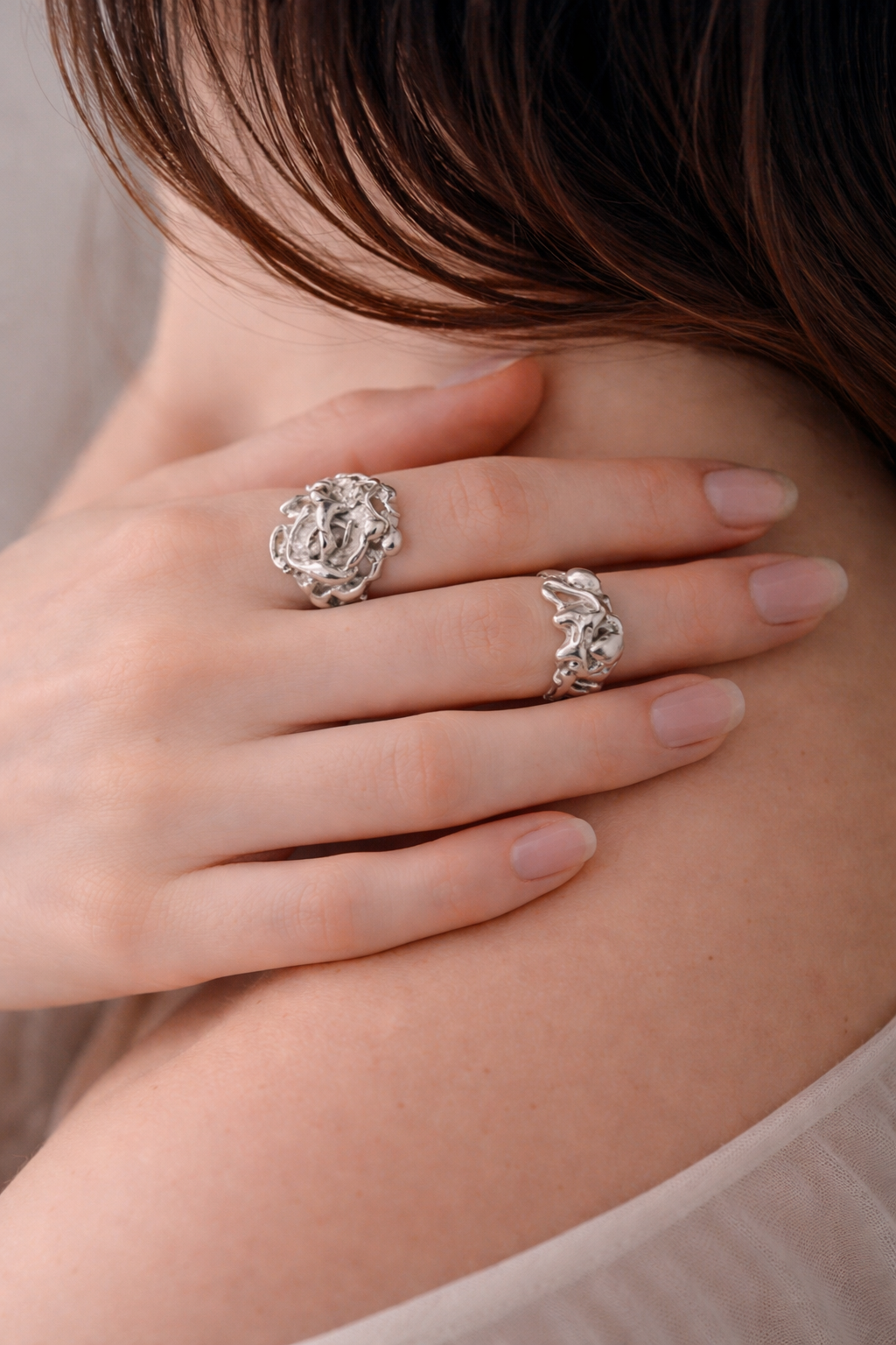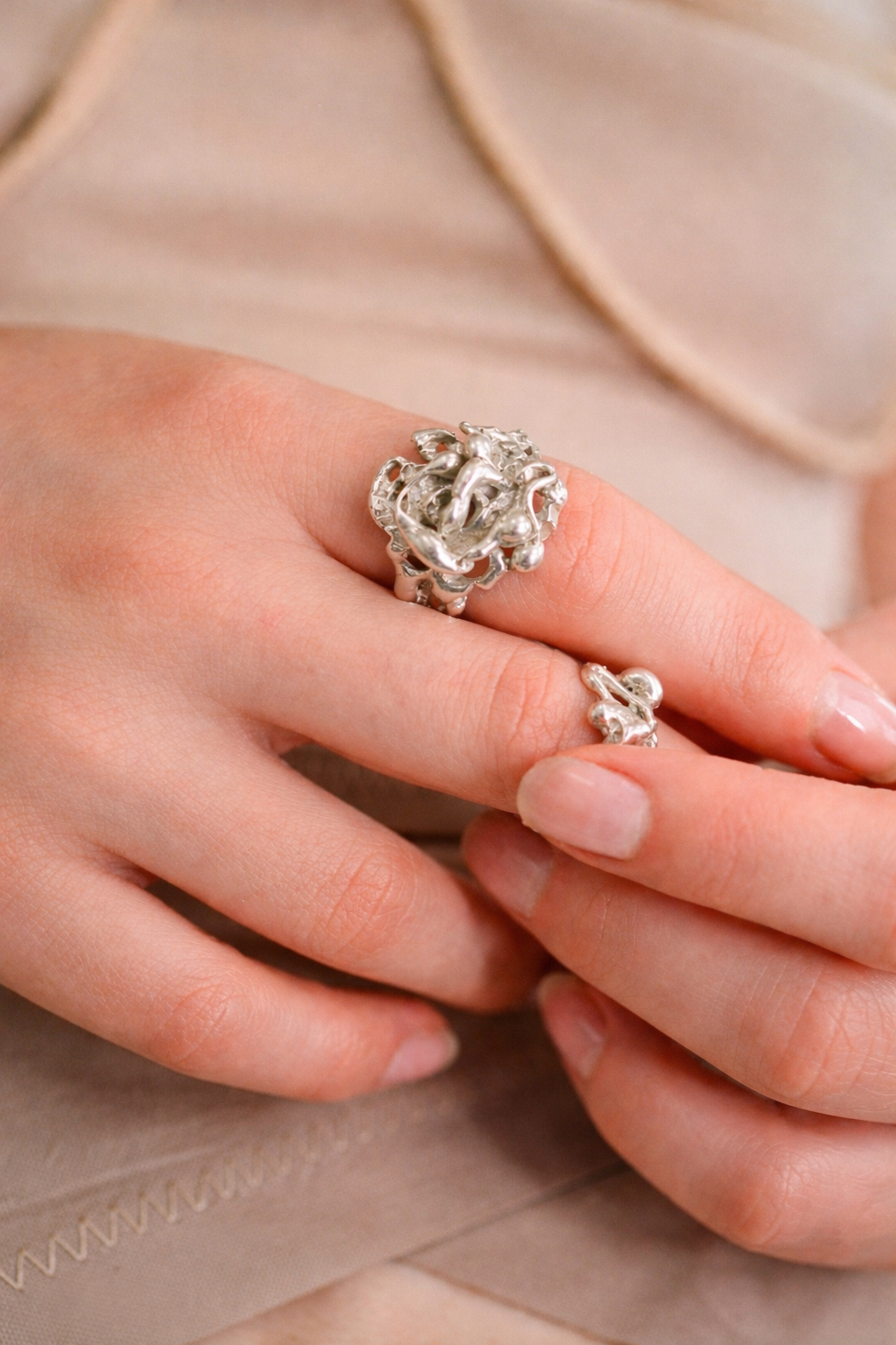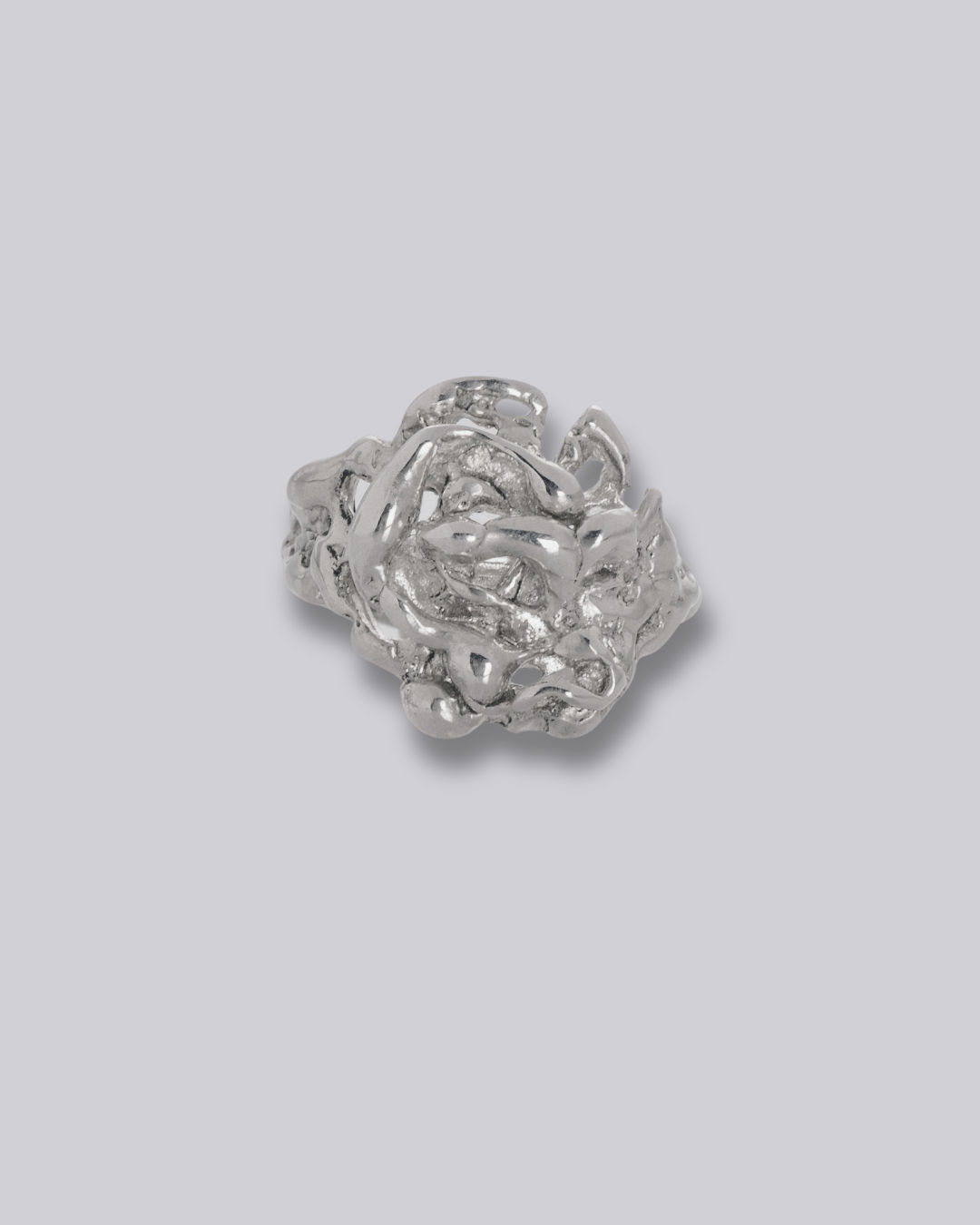 the wild remanent is a chunky, medium-weight and freeform molten silver ring